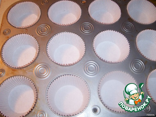 The muffin grease OR put paper baskets, a tablespoon put the dough. To level up. Bake at 175 gr. 15-20 minutes.