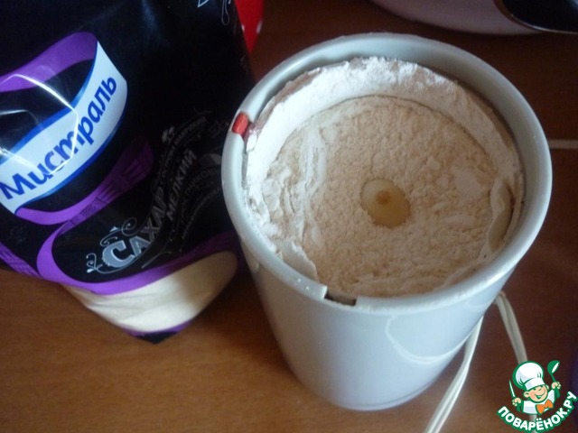 Sugar to turn the sugar powder with the grinder. Coconut is a little dry on a dry pan over medium heat ( 2-3 minutes, stirring constantly)