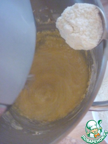 Beat butter with sugar powder in a magnificent mass. In the oil mass, continuing to whisk, to enter the eggs one by one.