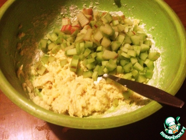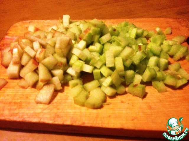 Rhubarb wash, dry, ochistit and cut into cubes.