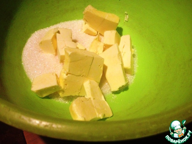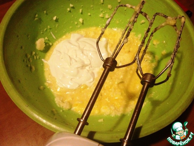 Form 20 cm in diameter grease and flour them. Put the dough, flatten. Put in preheated oven to 180C. Bake for approximately 40 minutes (up to dry toothpicks).