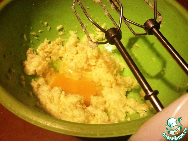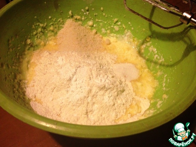 Pour the sifted with the baking powder and the flour, almond flour and knead the dough.