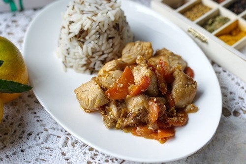 Соте из курицы с овощами и рисом