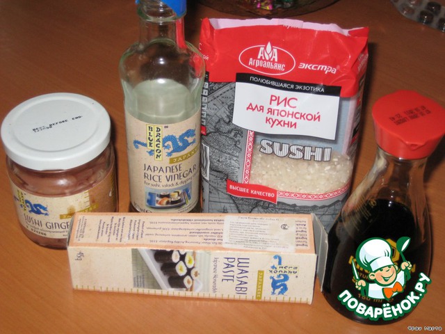 [b]Готовим заправку для риса.[/b] Смешать 4 ст. ложки рисового уксуса, 2 чайные ложки сахара и 2 чайные ложки соли. Немного (совсем чуть-чуть!) подогреть, развести сахар и соль до растворения и вылить в рис. Рис перемешивать только деревянной лопаточкой!