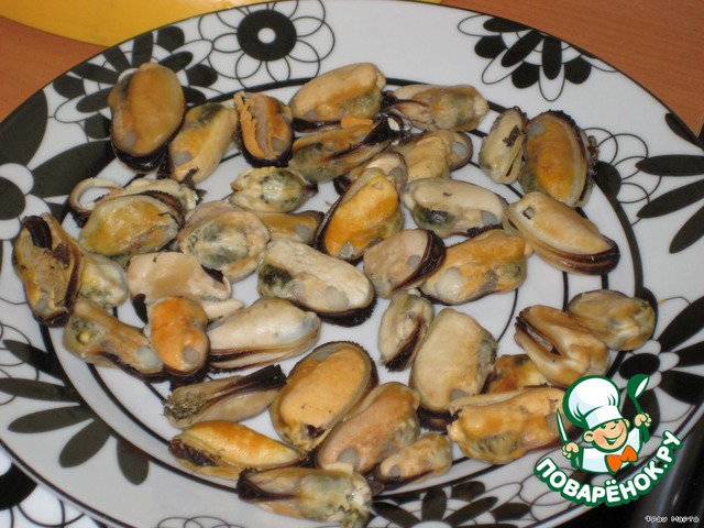 Следующий ролл - это омлет, мидии, перец сладкий и спайс-соус.