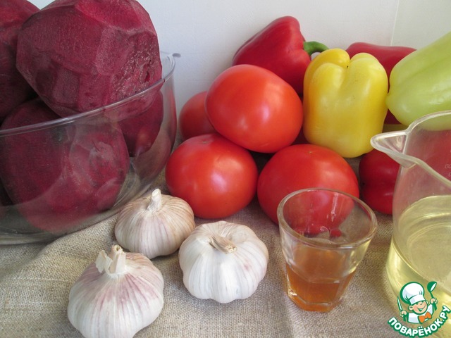 У автора в рецепте расчёт продуктов на 4 кг свеклы, я сделала половину этой порции. Чистое время приготовления икры 90 минут! Вот продукты, которые нам понадобятся. Свекла сырая и уже очищена.