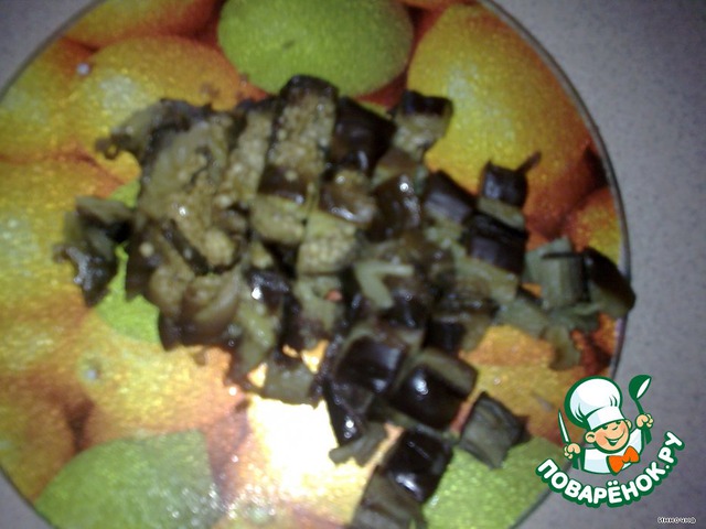 Отварить целые баклажаны в подсоленой воде 1 час. Достать и положить под пресс(чтобы стекла вода).