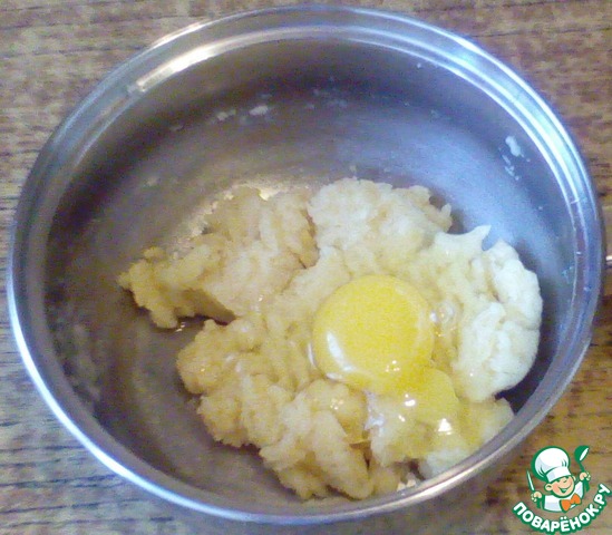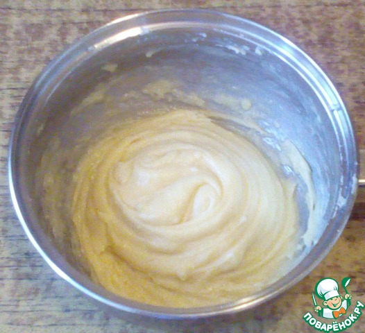 Проварить минутку, помешивая, до получения заварного теста. Остудить немного.