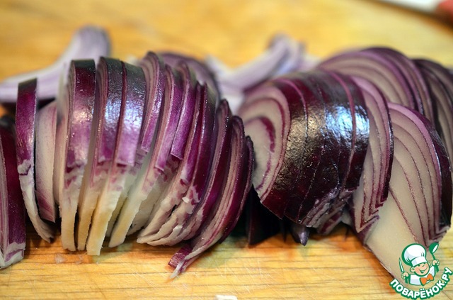 Перцы и лук нарезать соломкой.