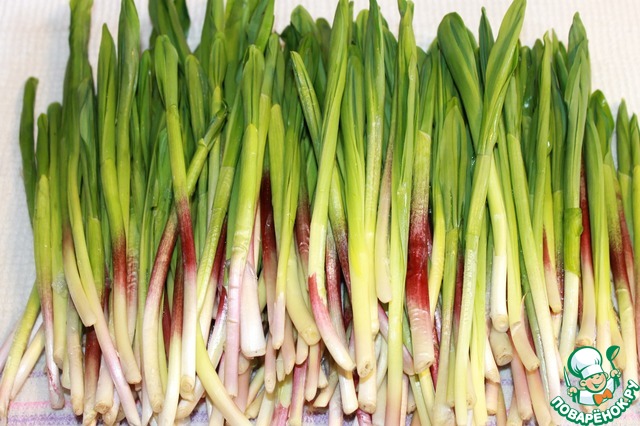 Черемшу залить холодной водой на 5-10 минут. Очистить, промыть под проточной водой.