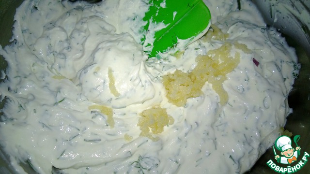 Приступаем к приготовлению крема. Творог и сметану перемешиваем ложкой. Посолить. Кто любит поострее, можно добавить черный перец.