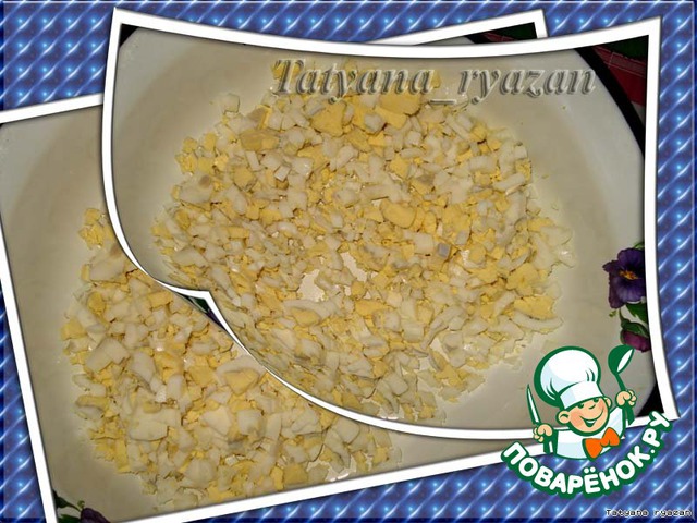Приготовить соус Соединить сметану, майонез, растительное масло, измельченный зубчик чеснока, соль. Тщательно перемешать венчиком.