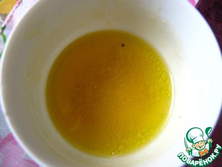 Приготовить заправку: смешать лимонный сок, мед, соль и оливковое масло.