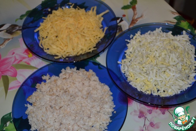 Всё перемешиваем, добавляя майонез. Чем будет больше майонеза, тем лучше пропитается наш пирог!