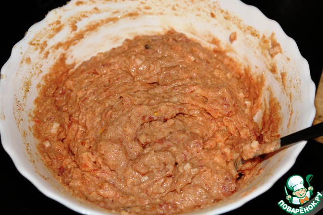 Приготовьте фарш из одной цесарки (курицы 1,5 кг)