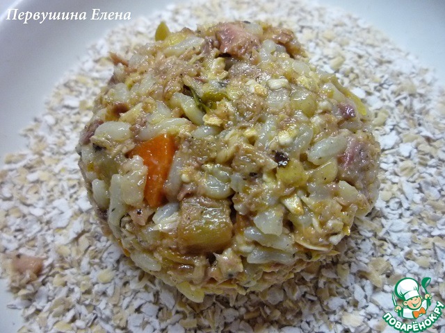 Если у вас с вечера осталась рисовая каша или плов уже без мяса (как это обычно бывает :D ), то можно сделать вкусные и быстрые котлетки-биточки к завтраку. Хлопьям в этом блюде отведена роль питательная и связующая.