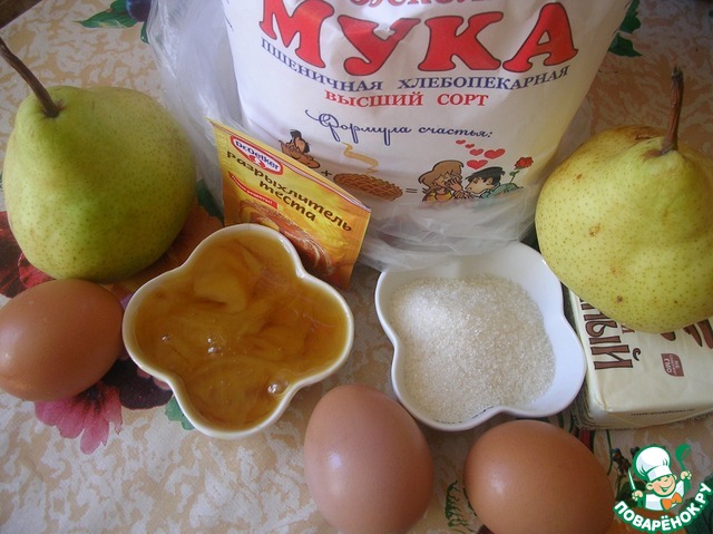 Маргарин растереть с сахаром (60гр.) муку смежать с разрыхлителем и добавить к маргарину. Все хорошо перемешать