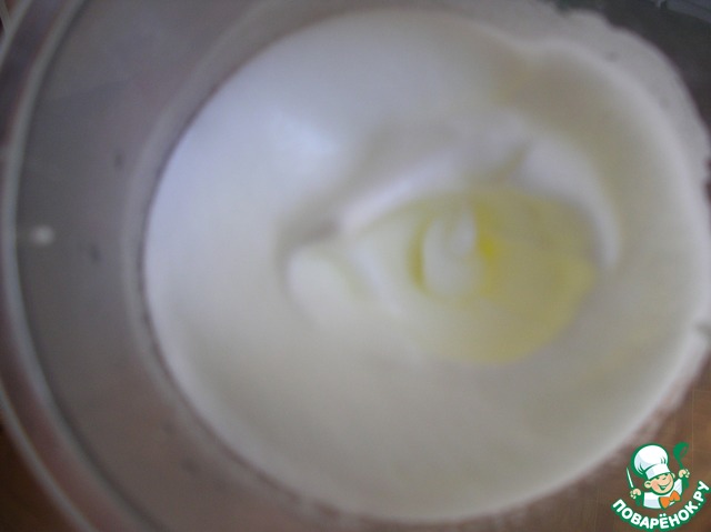 Белки добавить тесто и аккуратно перемешать. Полученное тесто вылить в форму и поставить в разогретую до 180 гр. духовку Выпекать 40 мин.